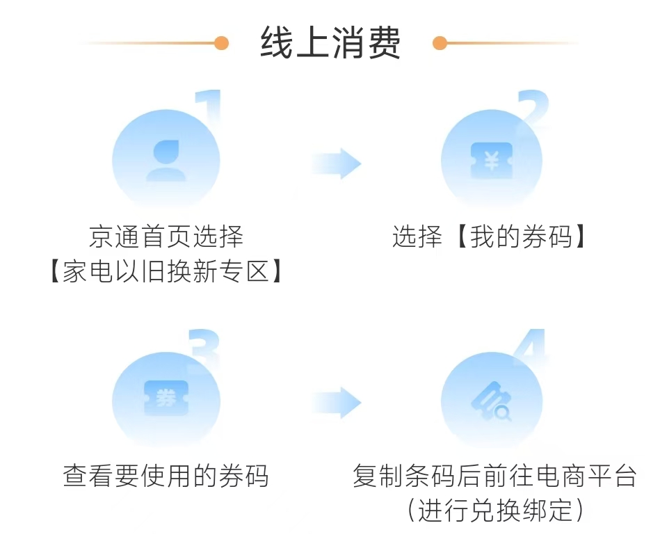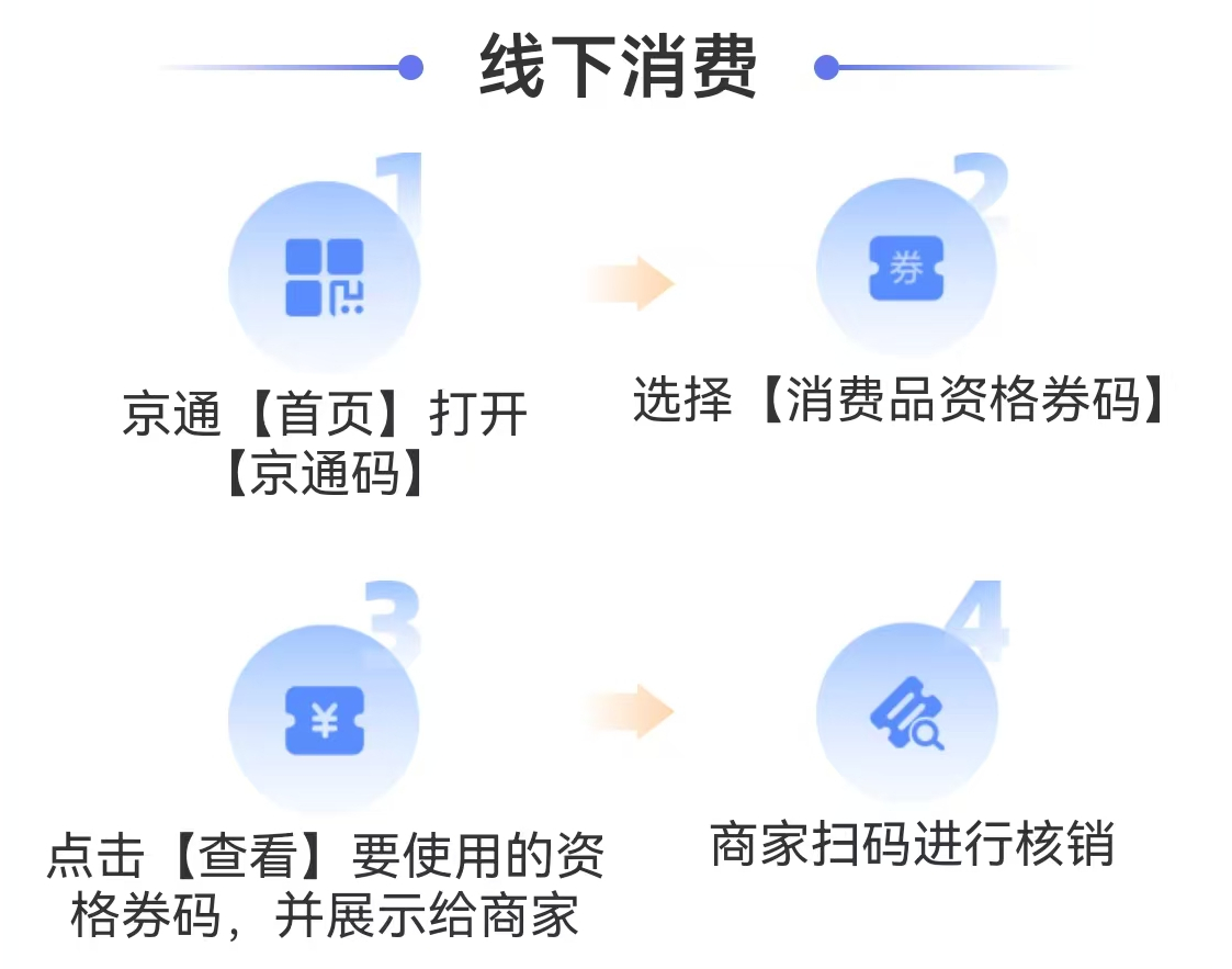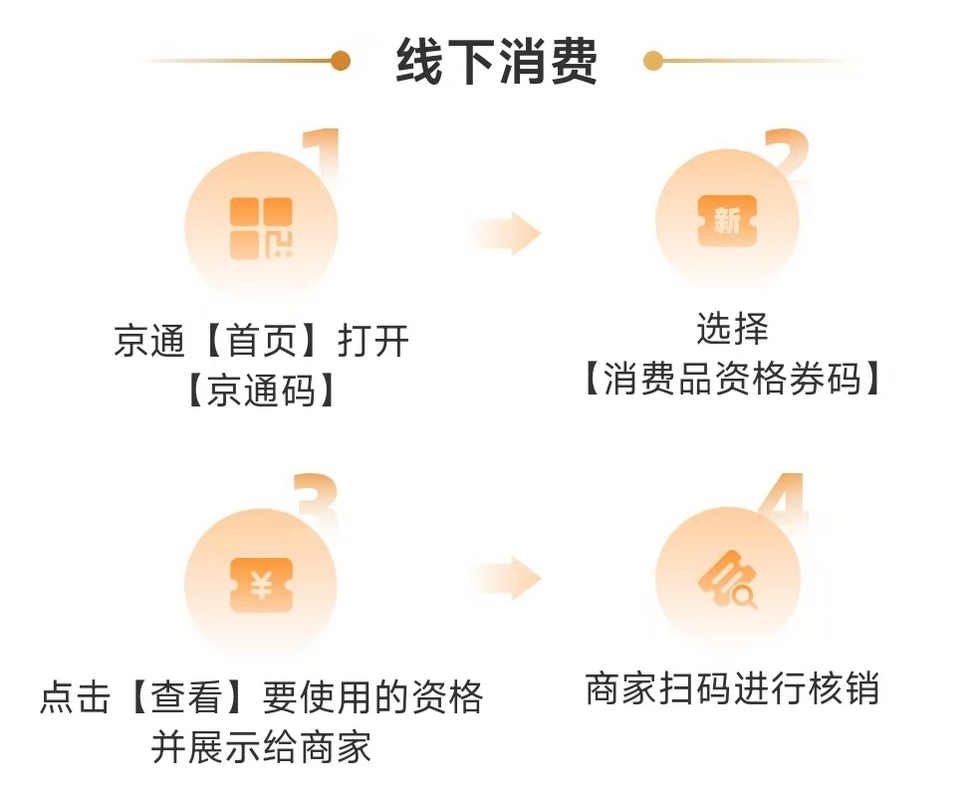 个人消费者领取补贴资格后,在北京市政策参与企业范围内任选销售企业的线上商城或线下门店消费使用。每类商品补贴资格在政策实施期间仅可领取并使用一次。补贴资格经商品购买渠道的资格认证系统绑定后,于订单支付环节使用。