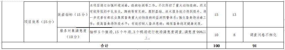 项目效益性分析:项目严格按照相关规定执行,与绩效目标设置情况相比,项目在数量指标、质量指标、进度指标、成本指标等方面均已完成,预期目标实际完成情况较好。项目实施效果显著,通过该项目的实施,进一步提高了集团公司所属畜禽养殖业重大动物疫病的监测水平;规范了口蹄疫、猪瘟等疫病的免疫及奶牛布病、结核病的检疫净化工作;增加了畜禽场消杀防疫能力,全面提升畜禽健康养殖水平,确保了集团系统内不发生区区域性重大动物疫情和重大动物源性食品安全事故,为提升种畜禽和畜产品质量安全和品牌优势打下了坚实的基础,为保障北京市场畜禽产品安全供应奠定了基础。