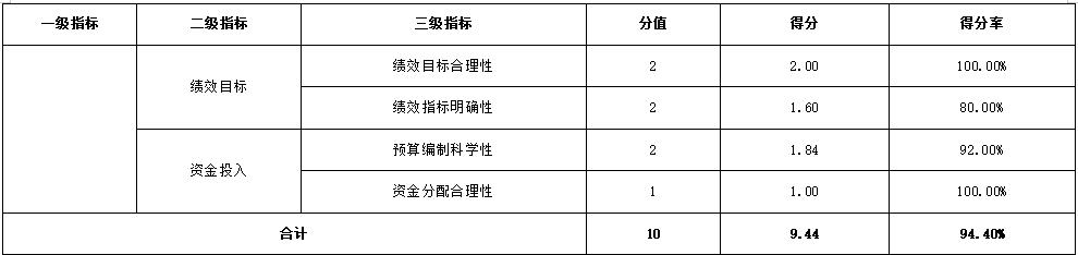 实训基地建设-摄影摄像技术专业后期制作剪辑实训室升级改造项目为保障摄影摄像专业教学需求,满足教学过程对影视后期剪辑制作的硬件需求,履行了完整申报程序,严格开展项目论证和预算编制,科学安排资金使用,总体决策情况良好。决策指标分值10分,得分为9.44分,得分率93.4%。得分情况见表4。
