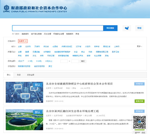 推进政府和社会资本合作项目(PPP)信息公开。分级收集管理市、区两级PPP项目信息,跟踪PPP项目推进情况,建立PPP项目信息报送和管理考核制度。通过政务微博微信发布《北京:纳入财政部PPP示范项目、最高奖补800万元》、《北京抛"3+5+5"PPP项目大礼包》等政策信息,确保企业单位及时了解掌握PPP相关政策动态。