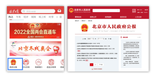 发挥政府公报标准文本作用,出刊48期刊登政府规章和规范性文件367件,电子公报分类检索功能持续优化,发布渠道进一步拓宽,链接至北京日报APP客户端,网站阅读量年累计680万人次,微博点击量累计超千万。