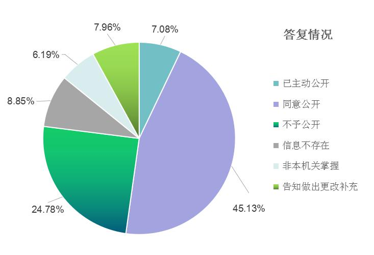 2016年度我办共答复113件申请,主要涉及信访业务、电话记录、信访数据等信息,相关业务处室承办提出答复意见和相关材料,经主管领导审核把关后,我办按政府信息公开相关规定对申请人进行了答复,其中: