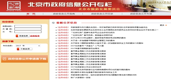 北京市旅游发展委员会2016年政府信息公开工作年度报告