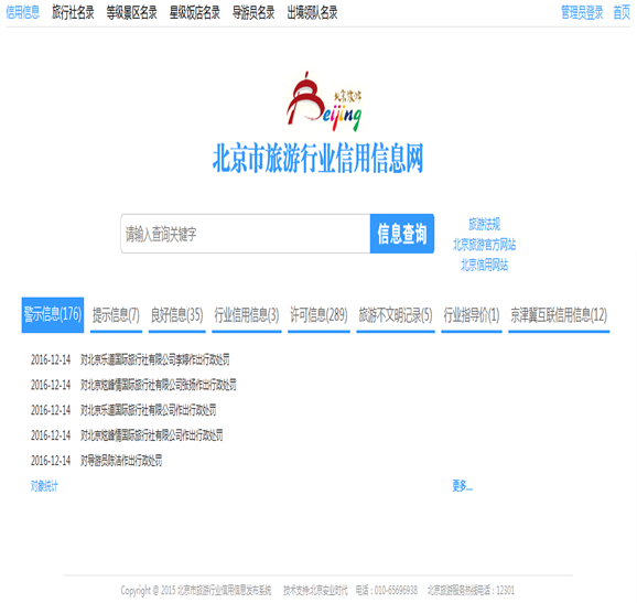1.依托“首都之窗”门户网站和北京市旅游发展委员会官网,设立办事指南、新闻中心、政务公开、咨询投诉、诚信公示等专栏,不断推进政务信息公开,主动接受社会和群众监督。