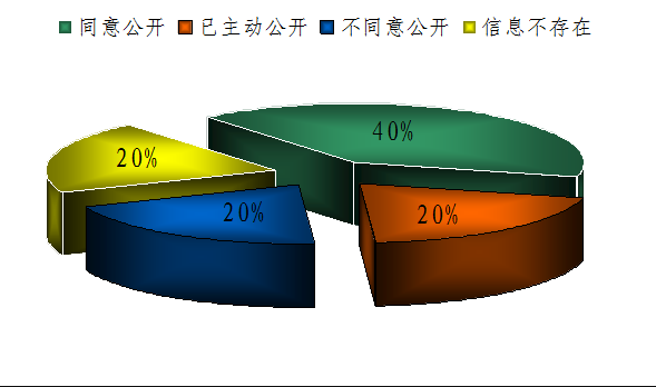 按时办结数5件,答复率100%,其中同意公开2件,占答复数40%;属于已主动公开1件,占答复数20%;不是《条例》所指政府信息,不同意公开1件,占答复数20%;申请信息不存在1件,占答复数20%。
