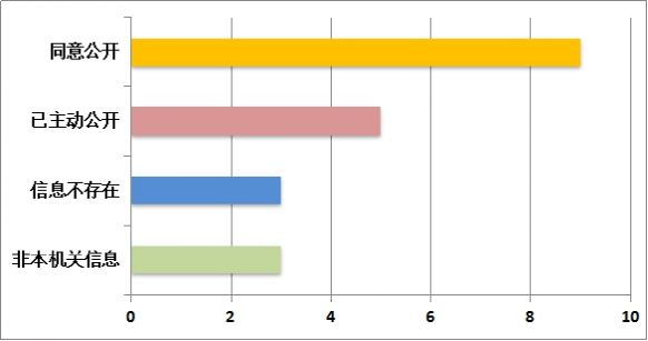 截至2016年12月31日,20件申请全部按期答复。到期办结件中:“同意公开”的9件,占总数的45%;“已主动公开”的5件,占总数的25%;“信息不存在”的3件,占总数的15%;“非本机关信息”的3件,占总数的15%。