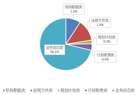 2018年,市科委主动公开政府信息1287条,全部通过政府网站发布,主动公开的信息数量同比增长14%。其中:2018年新增业务动态类信息1237条,占比96.1%;法规文件类信息23条,占比1.8%;机构职能类信息16条,占比1.3%;行政职责类信息7条,占比0.5%;规划计划类信息4条,占比0.3%。首都之窗转载市科委政府信息136条。