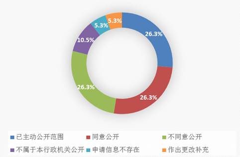 “不同意公开”5项,占总数的26.3%,均为“不是《条例》所指政府信息”。
