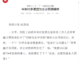 三是高水平服务。依托官方网站、微信公众号、微博账号及今日头条的头条号,初步建立起网上政务服务矩阵,设置政策速递、政务咨询、常见问题等栏目,积极推介中关村示范区的重要政策、资金支持项目等信息。为了及时给企业答疑解惑,公布了政策咨询电话,建立健全了留言答复微信沟通机制、咨询问题限时回复机制、疑难问题会商机制、咨询回复问题情况通报机制,做到答复精准、回复及时、服务热情,咨询服务水平进一步提升。2019年网站、微信、微博等渠道共收到咨询问题1600余条,已全部按时按要求回复。