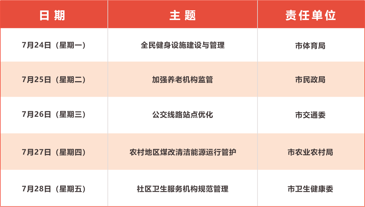 7月24日晚7:30,“市民对话一把手”全媒体直播访谈节目邀请市体育局主要负责同志,与相关市政协委员共商建设“一刻钟健身圈”健身设施网络,室外健身器材“一键报修”和室外健身设施安全技术巡检等方面的具体举措。
